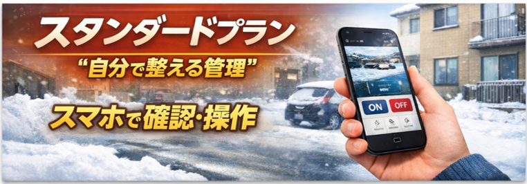 アパートや月極駐車場の管理はもちろん、自宅まわりの融雪を自分の判断でコントロールしたい方にも適しています。