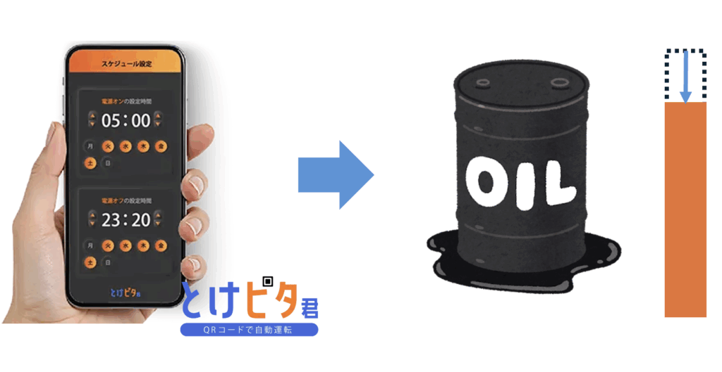 とけピタ君にはスケジューラ機能が実装されています。「毎日○時から○時の間は運転停止」等の設定が可能です。例えば「23時〜5時まで運転停止」とすると6時間は運転停止します。この設定は店舗営業時間や入居者のスケジュールを考慮して自由に決めることができます。例えば夜勤者がちらほらいるマンションの場合、0時交代と想定すると12時〜5時とすれば、入居者の勤務スケジュールにあわせることができます。また朝は8時には融雪がある程度できている必要があるということでしたら、その2-3時間前からスケジューラを解除するように設定するとよいでしょう。