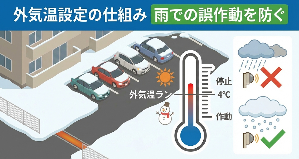 ですので先ほどの外気温を設けることでこのような誤作動を減らしているのです。